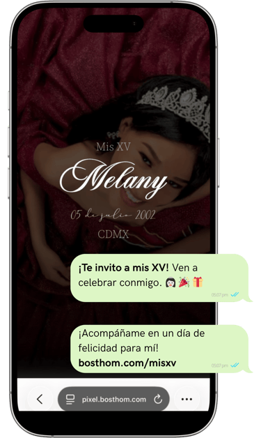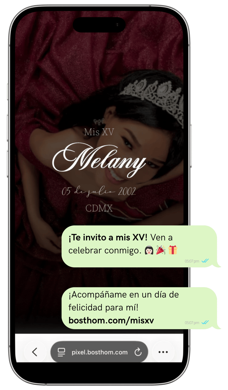 Una invitación que vive en el celular de tus invitados.